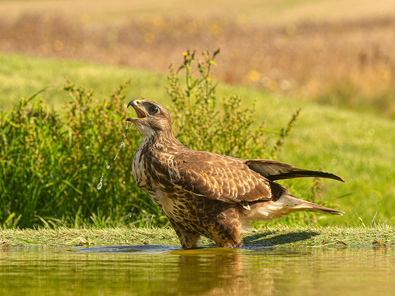 Last season we have opened a brand new hide for photographing birds at a reflection/drinking/bathing pool. The hide supports similar features to the glass hides for the main Red Kite and Buzzard theatre and along with regular appearances of Buzzard coming to bathe, there are a number of other exciting species visiting the pool. The hide was very popular so we have kept it running and will prioritise bookings for this hide.